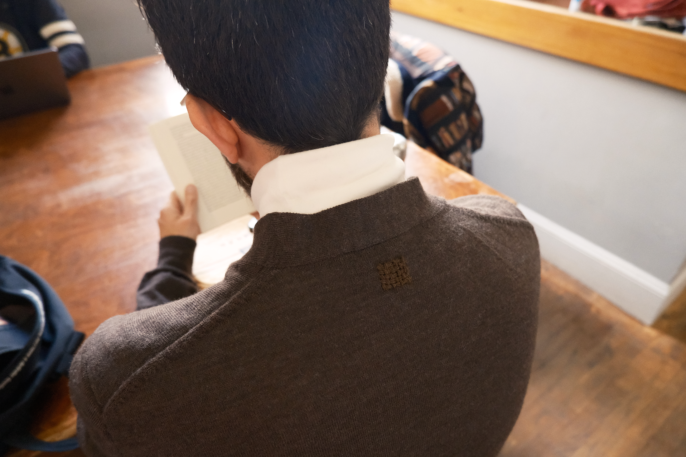 ちょうど私たちが出会った頃につくられたのかもしれないそれは、「修繕しようっと」と思いながらネットで選んだ中古品。届いてみて、全体的に状態はよかったけれど、注文時にMacBookの画面で確認した襟元に空いた小さな穴は、確かにそこにあった。先月の記念日的な日にパートナーに渡したものの、「ダーニングするから」とすぐに返してもらい、気づけば1ヶ月経つ……いよいよ寒くなってきたし、やらなくちゃ。
